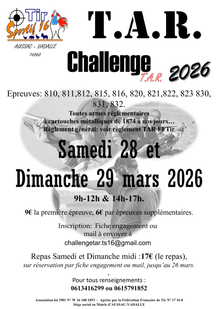 - 28 et 29 Mars : Challenge TAR du TS16 2026 Challenge TAR 2026
