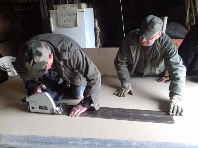 C’est sous une journée pluvieuse que toute une équipe de 20 personnes s’est activée pour débroussailler et poser un nouveau plancher dans l’algéco. Une équipe renforcée par nos amis anglais (pour qui la pluie n’a aucune espèce d’importance) et quelques petits nouveaux dans le club…